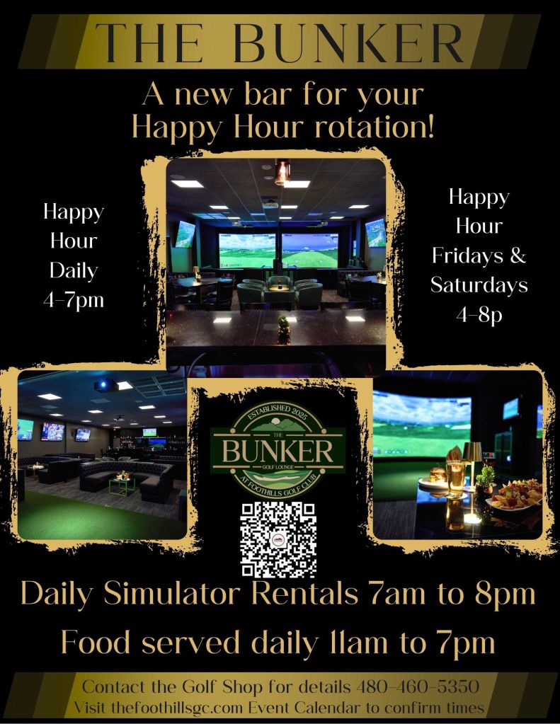 - Private Events: For groups of more than 10 we offer facility buyout pricing upon request. Contact the golf shop or info@thefoothillsgc.com for pricing.